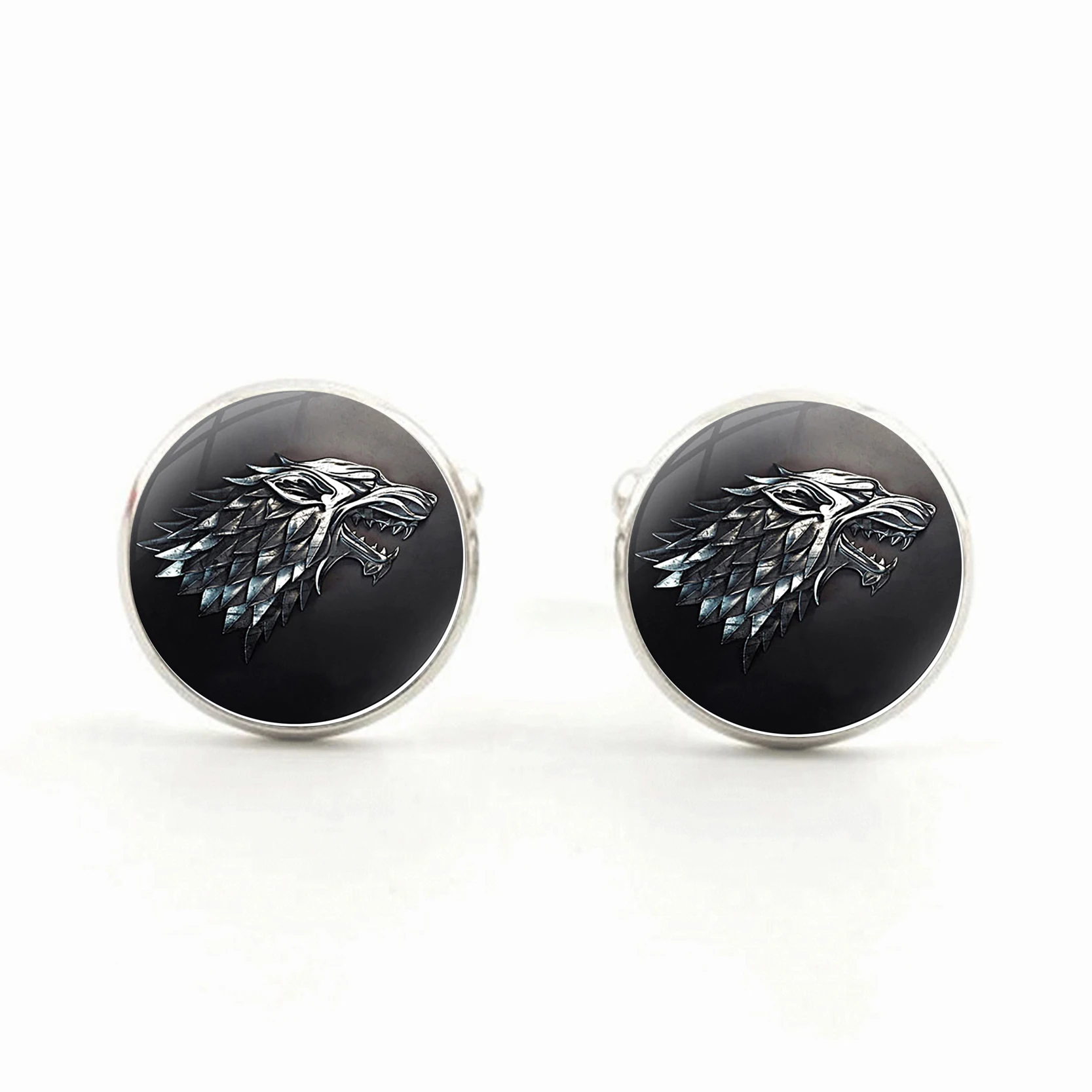 Silver Plated Game of Thrones Shirt Cufflinks House Stark Winter is Coming Round Glass Dome Cuff Me