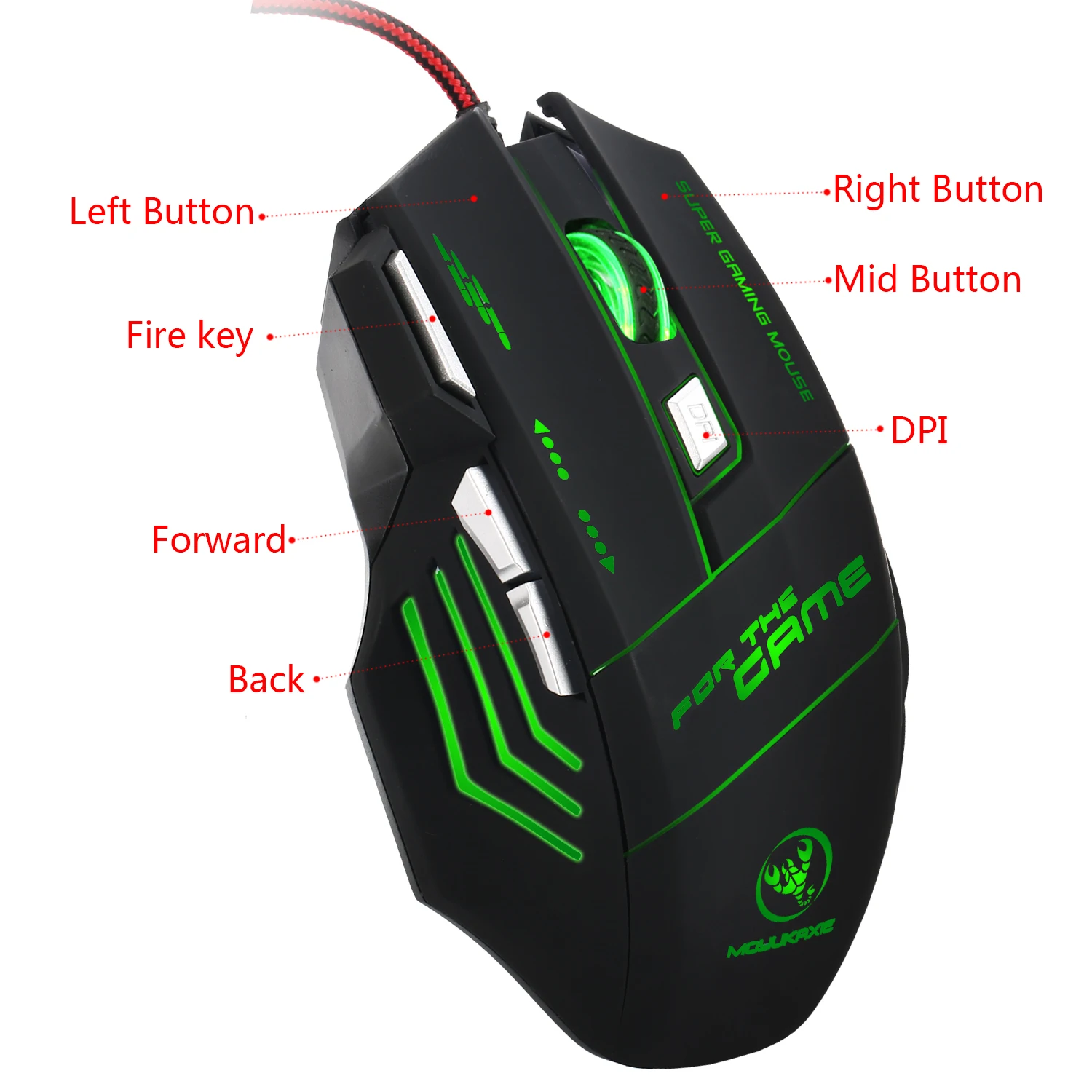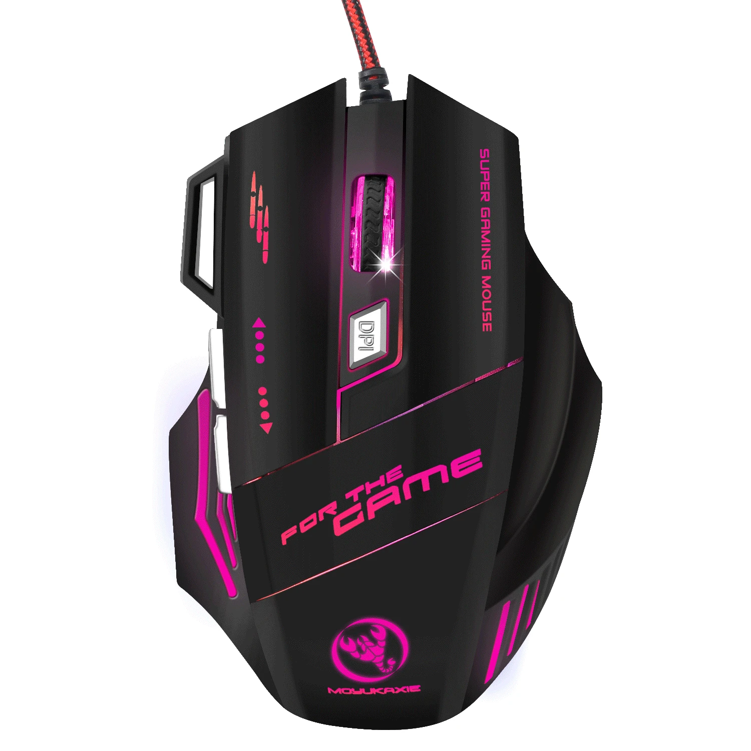 Rocketek USB Wired professional gaming mouse 5500DPI Adjustable 7-color backlight game Mouse for De